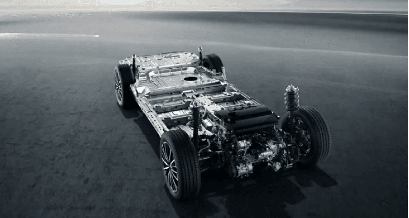 Tiggo 8 Pro dibuat pada platform T1X. Sasis ini sengaja dirancang untuk memberikan ruang kepala yang lebih baik untuk kursi depan dan belakang, serta jarak antar tanah yang lebih tinggi. Sudut pendekatan dan keberangkatan yang tinggi juga memastikan performa off-road yang lebih baik jika diperlukan.